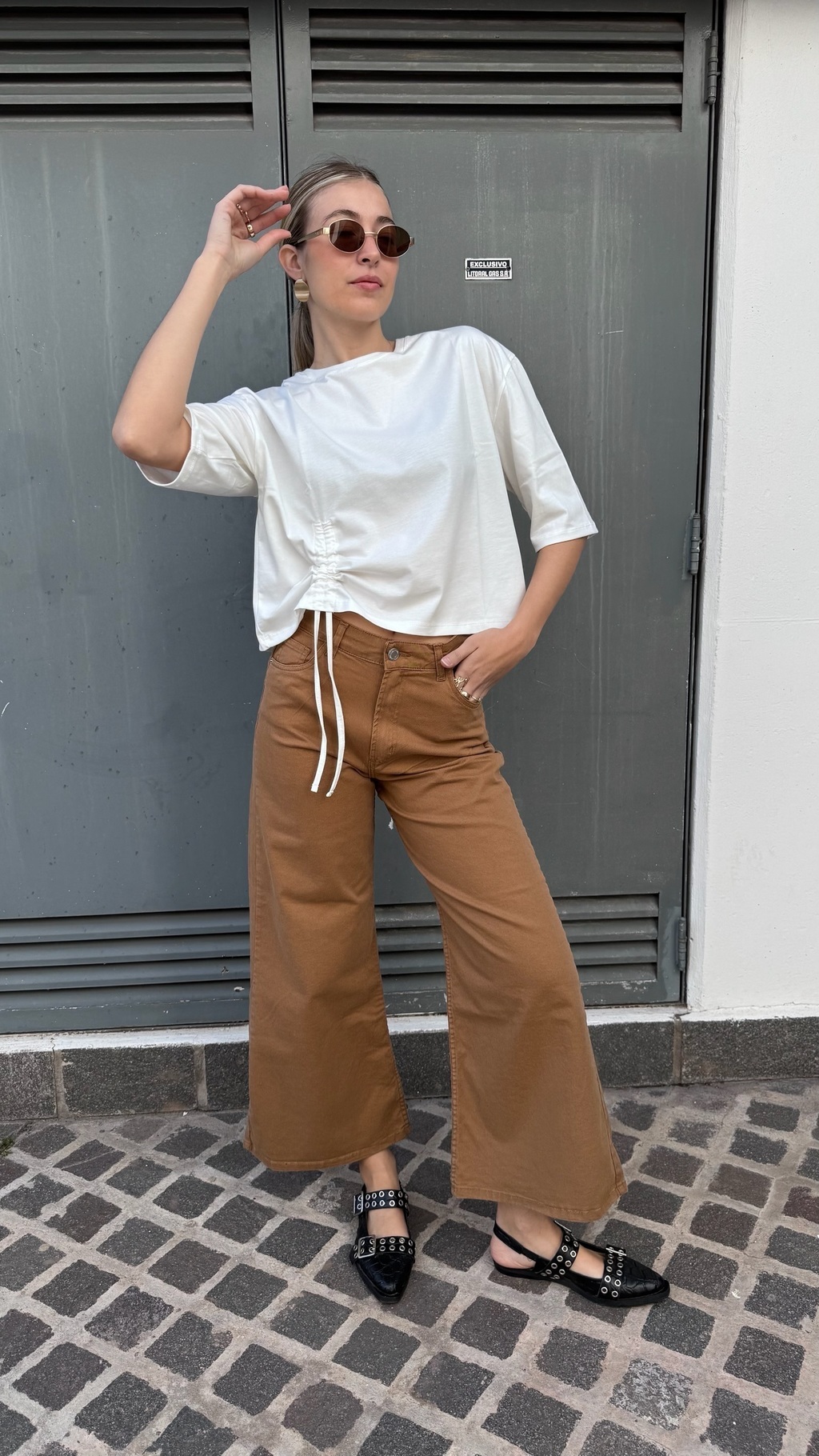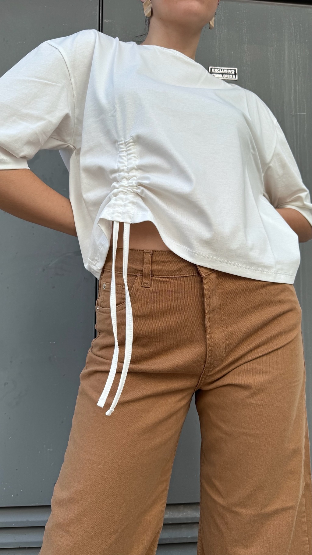 Reme oversize, manga corta, con lazos en delantero para fruncir, escote redondo
